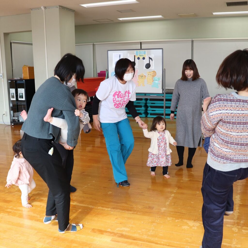 よちよち一人歩き~入園前 リトミックフィットネス♡てくてく 見学可 月 9:45~10:30 月曜日クラス 火 10:00~10:45 火曜日クラス 子供達の大好きな音楽を使ってリズム感・身体表現・身体作りなどを楽しく遊びながら伸ばします。手遊び、楽器遊び、身体遊び、お家で遊べるヒントがいっぱいですよ。