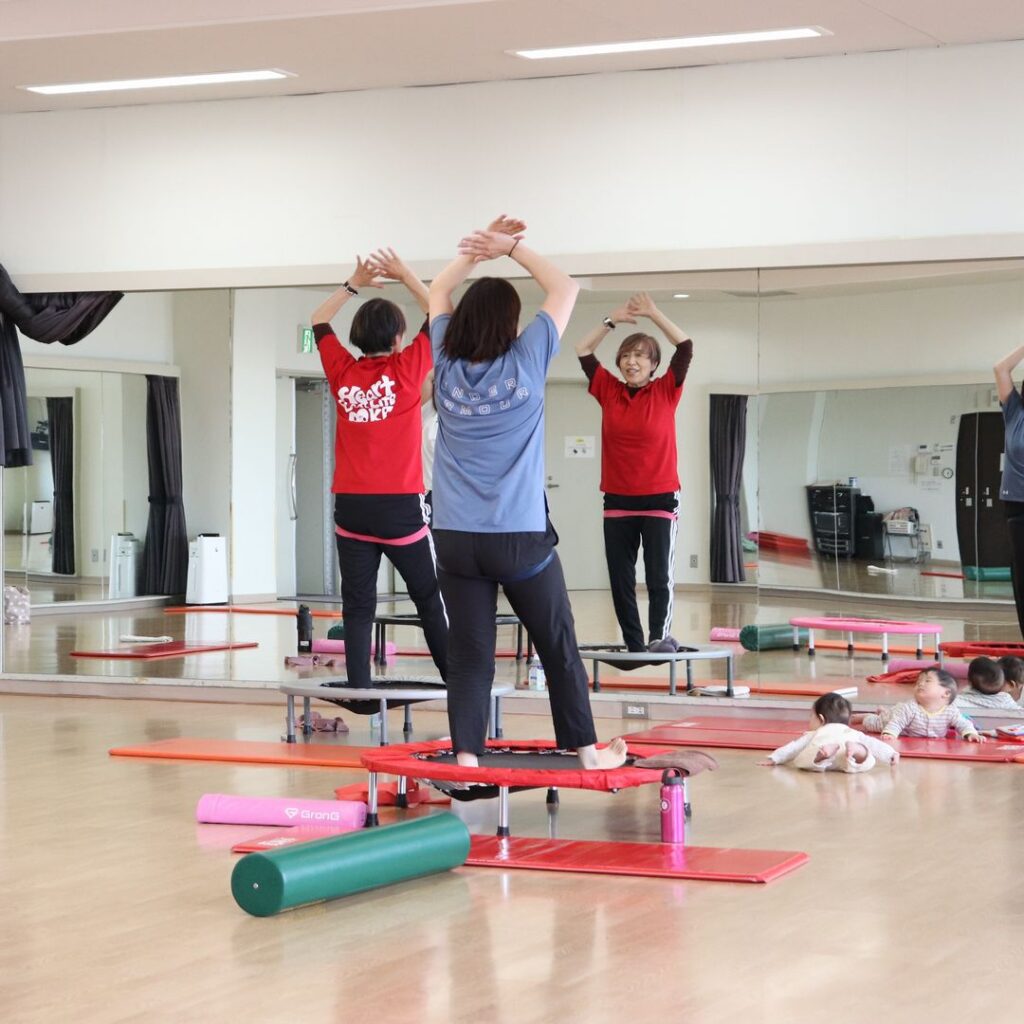女性のみ 出産後のママとお子様(3ヶ月~) ママの為の燃焼トランポダイエット 見学可 火 12:30~13:25 <定員まで残りわずか> ママの心と体を整え親子同伴で気軽に楽しめる場です。お子様連れでも安心して参加できるよう、少人数制でゆったりとした空間をご用意しています。