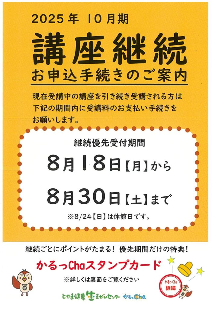 10月からも講座を続けられる方は、ぜひ『継続優先期間中』のお手続きをお願いいたします!