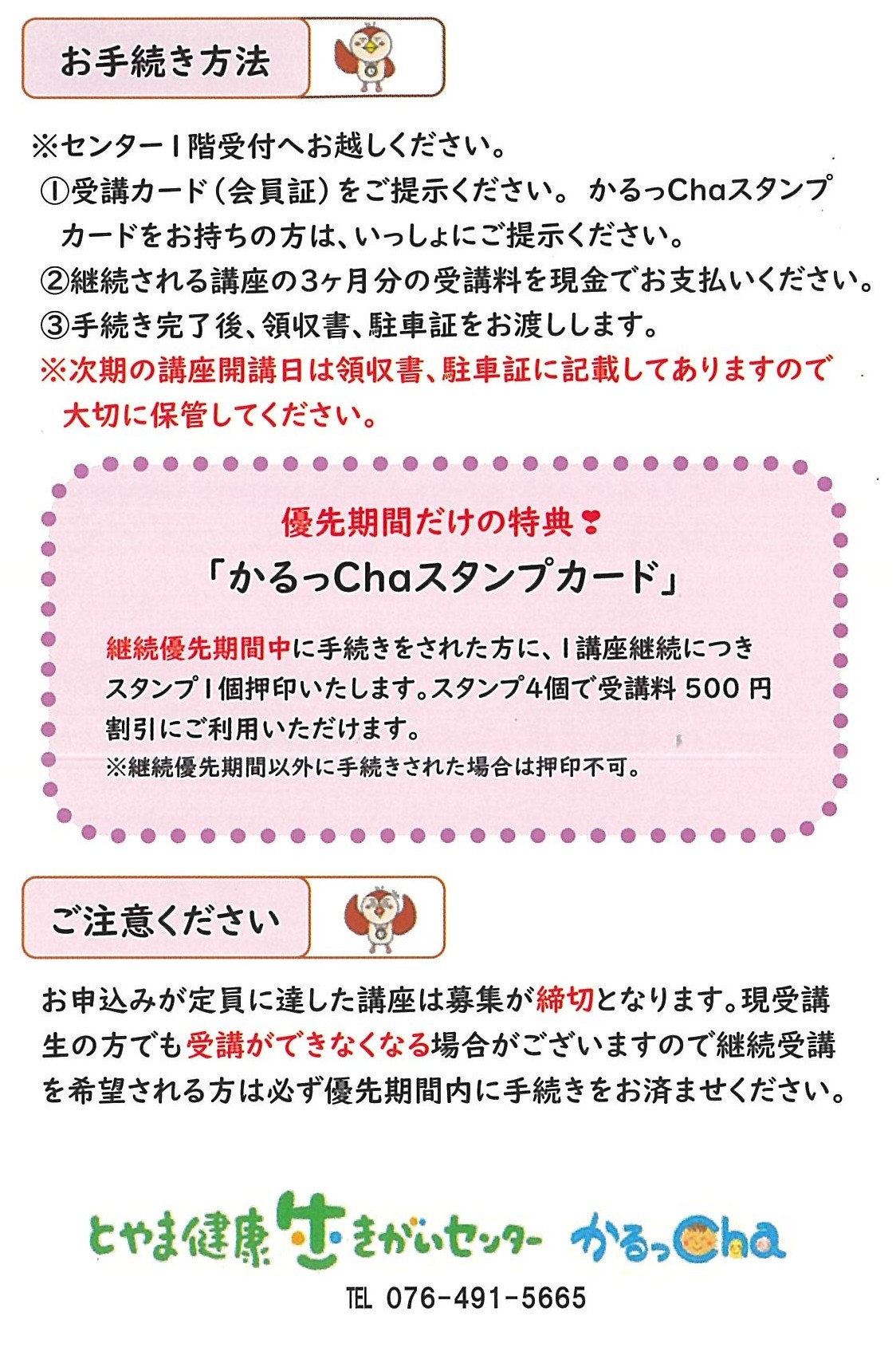 ※期間中のお手続きで1講座につきスタンプを1つ押印。4つためると500円割引券としてご利用いただけます。