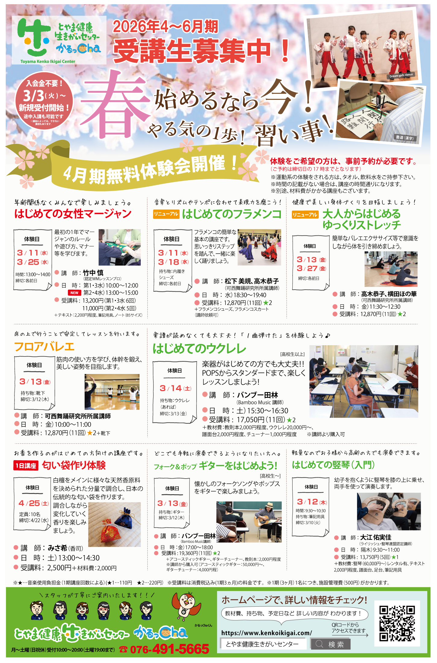 とやま健康生きがいセンターでは、2026年4月~6月期の受講生を募集中です!