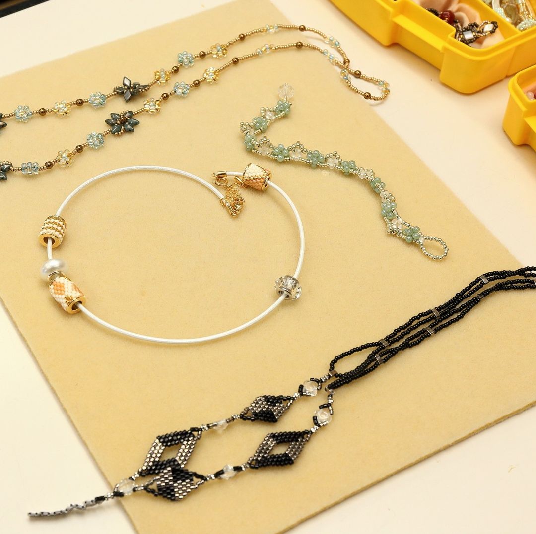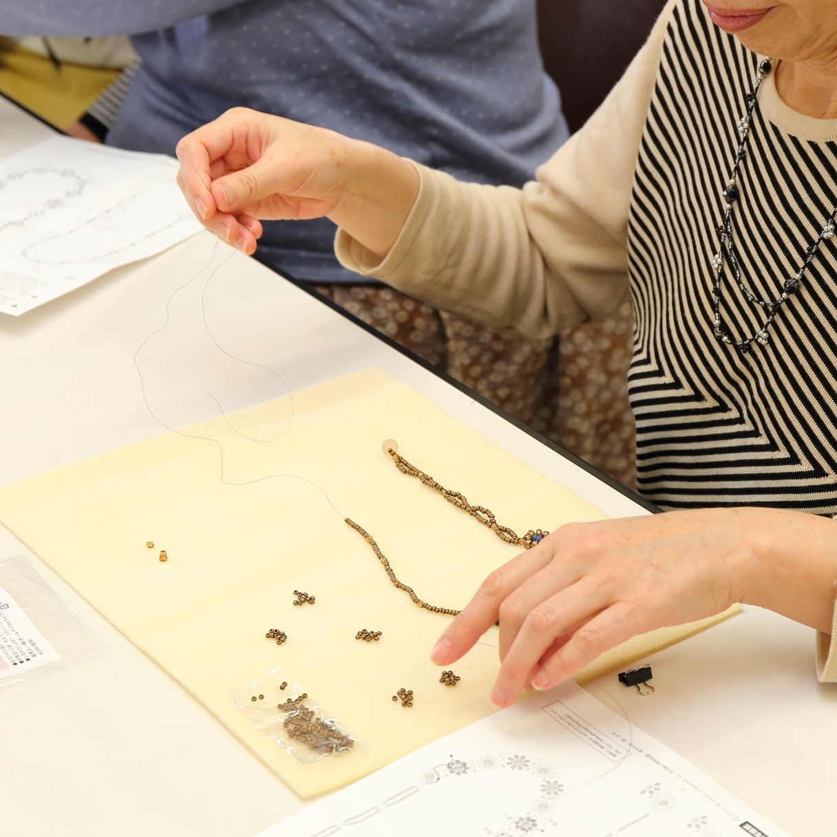 糸と針を使ってビーズをアクセサリーやチャーム等にしていくビーズワークです。