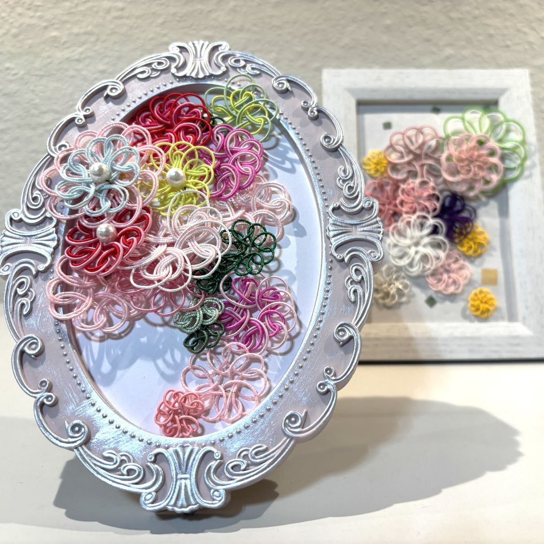 ・習得後、結びを活かした作品を制作します。見本帳と作品の完成は1ヶ月を予定しています。難易度の高い結び、作品の大きさ、進行度合いにより2ヶ月以上要する場合があります。