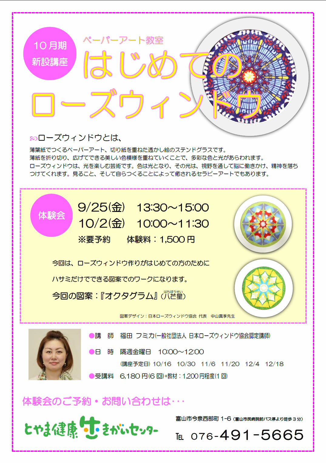 10月より隔週金曜日で「はじめてのローズウィンドウ講座」が始まります!